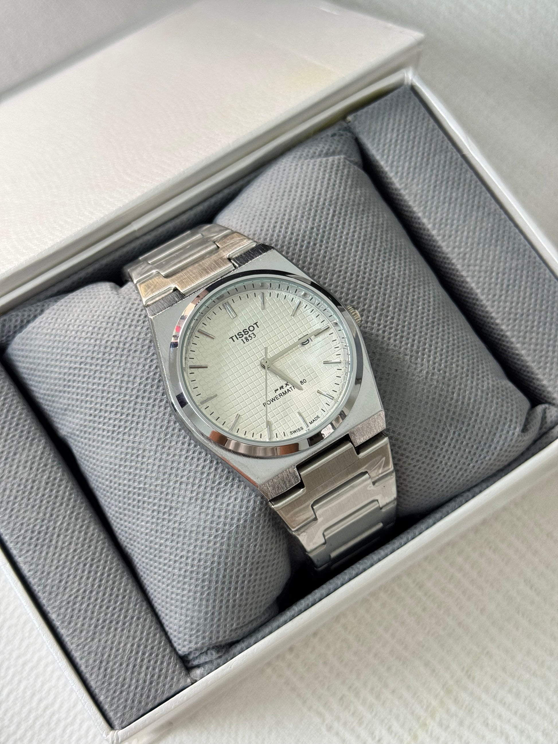 Discover the elegance of the Tissot PRX 1853 watch, a timeless masterpiece that seamlessly blends modern sophistication with classic design. Featuring a sleek stainless steel case, a refined quartz movement, and a distinctive integrated bracelet, this watch is designed for both style and functionality. The PRX 1853 boasts a minimalist dial with luminous hands and markers for easy readability, making it a versatile accessory for any occasion. With its impeccable craftsmanship and enduring appeal, the Tissot PRX 1853 is the perfect choice for those who appreciate the finer things in life.